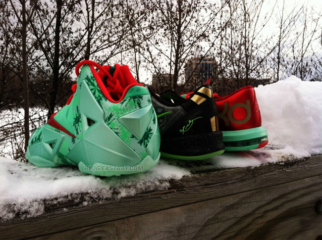圣诞节日临近,这个包含了 3 款 Nike 超级巨星签名战靴的 2013 年圣诞套装即将在 12 月 26 日发售。不仅有红绿搭配节日氛围浓厚的 LeBron 11 "Christmas" 和 KD6 "Christmas",还有造型极富战斗感、鞋面由 TPU 菱角覆盖的 Kobe 8 System SS。