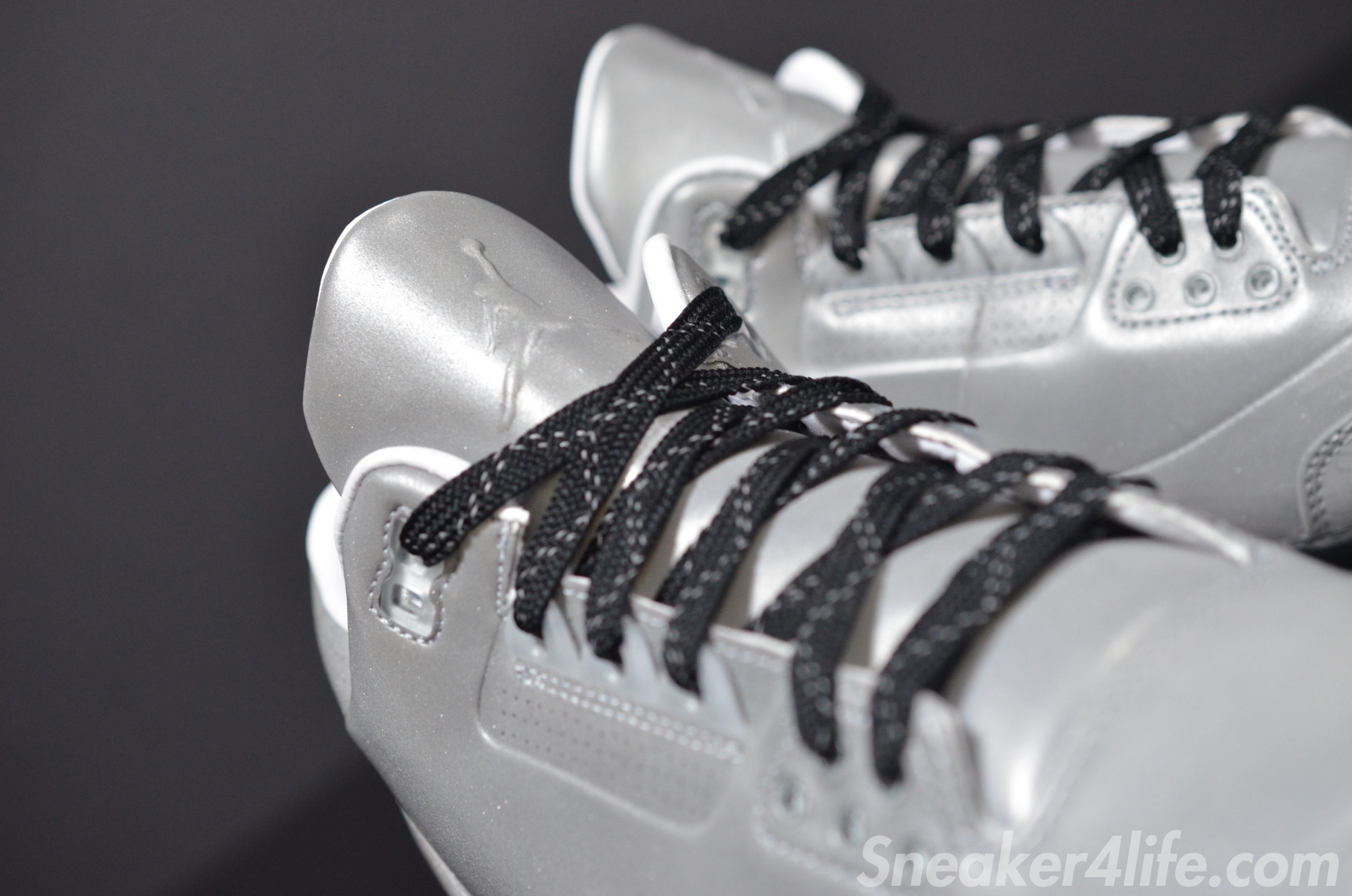 这款采用 Air Jordan 3 鞋型的 Air Jordan 5Lab3 的亮点在于鞋面、鞋舌、后跟和鞋带上都采用了 3M 反光材质打造。
