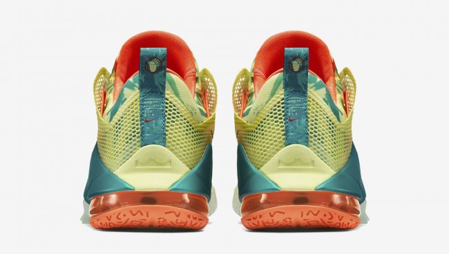 鞋身细节十分精美,颇值得细细品味。采用透气鞋面打造低帮鞋型,鞋帮和鞋舌呈现出棕榈叶图案,鞋底则一改前面几代 LBJ Low 鞋型的 360 Air Max 全掌气垫,由前掌的多单元 Zoom Air 搭配后掌的 180 Air Max 气垫,在启动速度和大冲击力缓震方面找一个平衡。