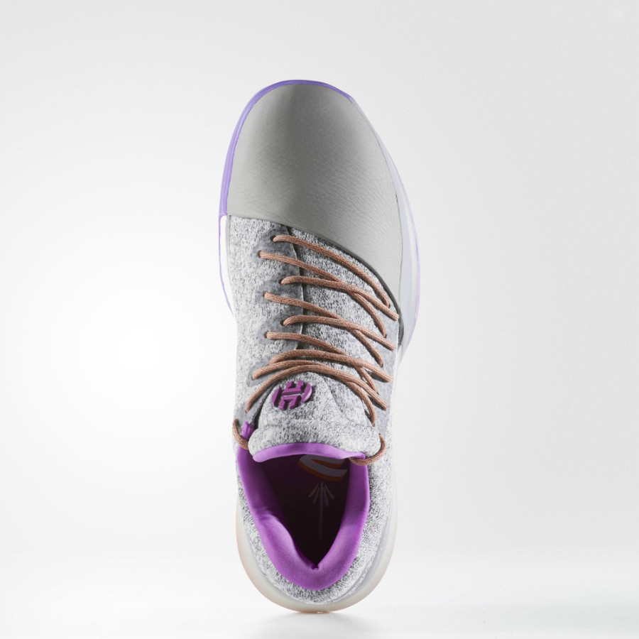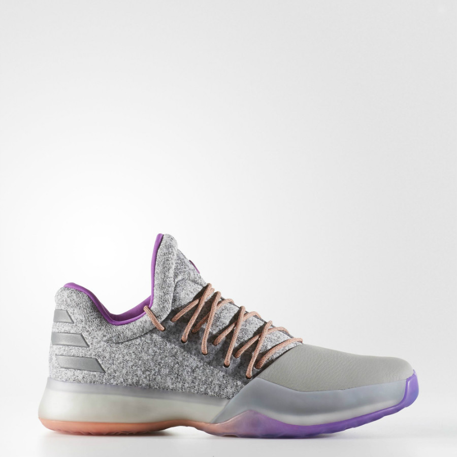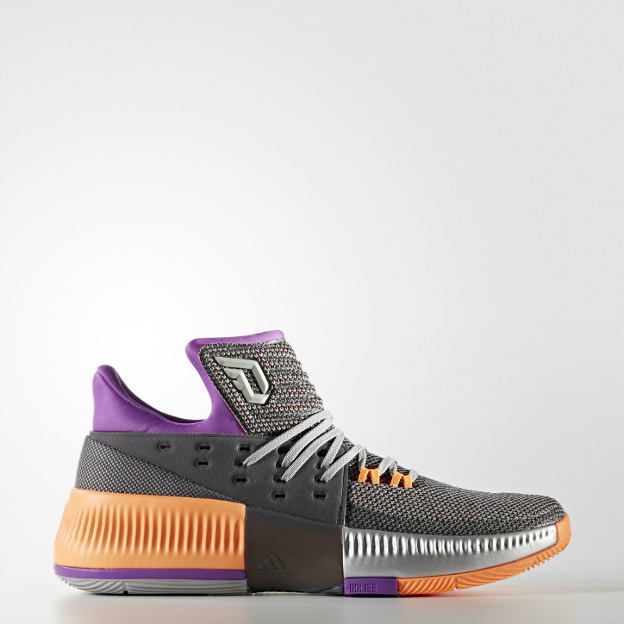 这两款球鞋分别是 Harden Vol.1 和 Dame 3。本次 All Star 系列鞋面均以灰为主色调,并搭配黑色花纹。Harden Vol.1 采用紫色的内衬,搭配紫色与橘色的渐变鞋底。Dame 3 同样运用了紫色内衬,可外底则采用橘、紫、黑、灰四种颜色的拼格而成。橘黄色与紫色的搭配,给人一种湖人与太阳的主场配色的视觉感。