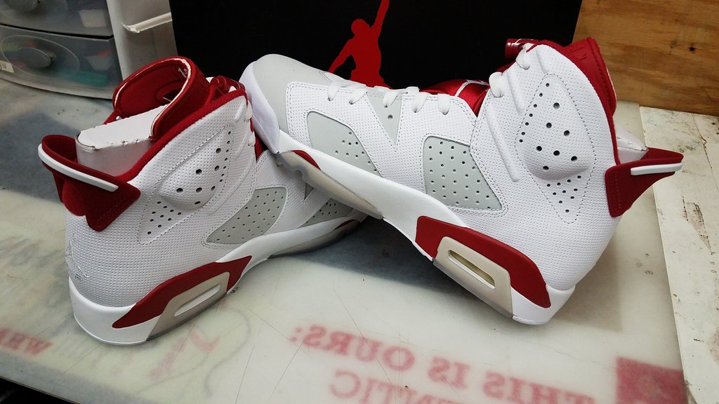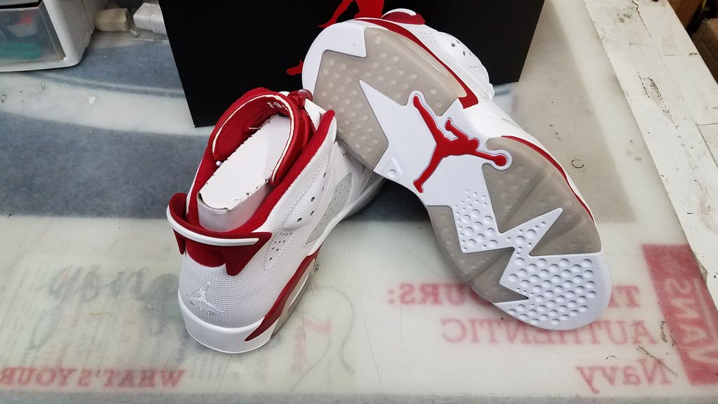 这双 Air Jordan Retro 6 “Alternate” 采用全新皮革纹理及鞋舌细节,在面具鞋舌的内侧,可以看到有 1991 的字样。而清爽的浅色鞋面则呈现了精细的冲孔纹理,健身红的细节托衬,熟悉的白红装扮带来十足的运动活力感受!前段时间 Marcus Jordan 在自己的 Instagram 上晒出跟老爸的合影,照片中的 Michael Jordan 上脚了这双 Air Jordan 6 “Alternate”。