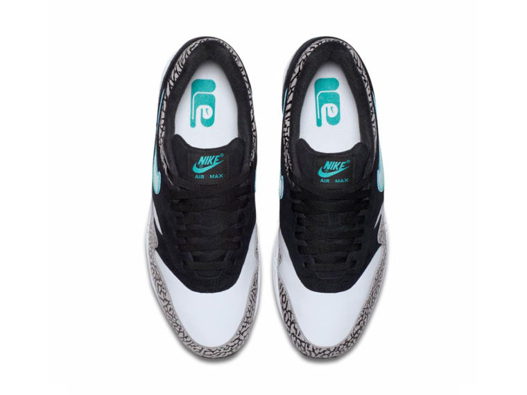 这一同 atmos 店铺的联名作品,采用了 Air Jordan 3 三代鞋型上最具标志性的爆裂纹,黑白鞋身装饰水绿 Swoosh,无论是炸裂的视觉冲击感受,还是简约大方的基调,都让这双 atmos x Nike Air Max 1 “Elephant Print” 成为了横扫街头的穿搭神器!
