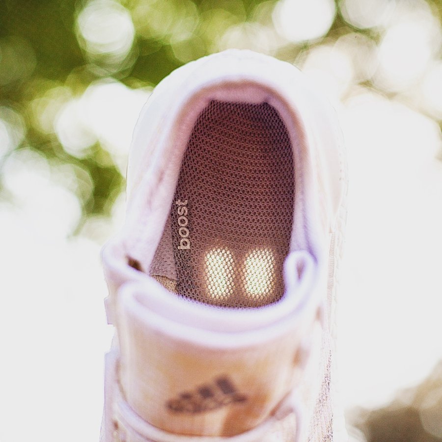 同时取消传统鞋垫设计,采用尼龙网布覆盖中底,进一步提升散热效率。另一方面减少双脚与 Boost 间的阻隔,营造出更为直接的缓震体验。
