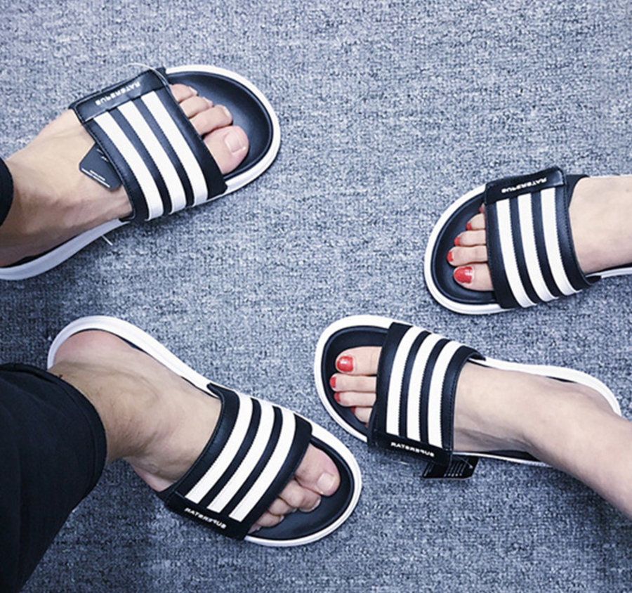 非常简约的设计,几乎可以搭配你在夏天任何的穿着风格。一体式橡胶鞋身,鞋面加入三道杠点缀,整体舒适度绝对能让你满意,再加上相对低廉的价格,是性价比不错的一款拖鞋。