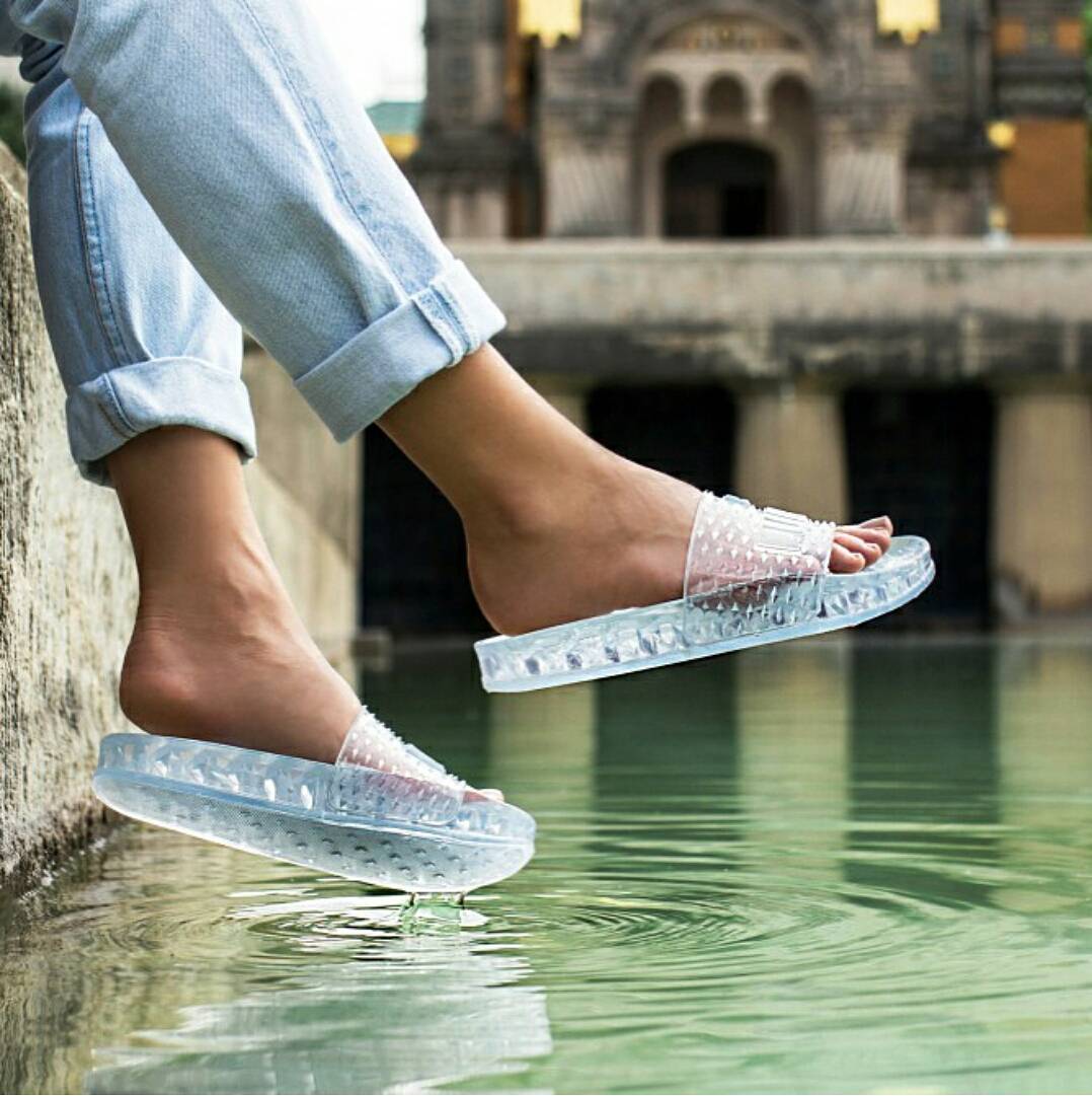 当第一眼看到这双鞋时,可能无数人在心中大喊:“这不就是最普通最廉价的透明澡堂拖?!”但你越仔细观察就会觉得这款拖鞋有其独特的质感和魅力,再有 Puma 和 Rihana 的加持绝对是一双奢华版透明澡堂拖。
