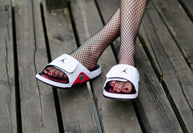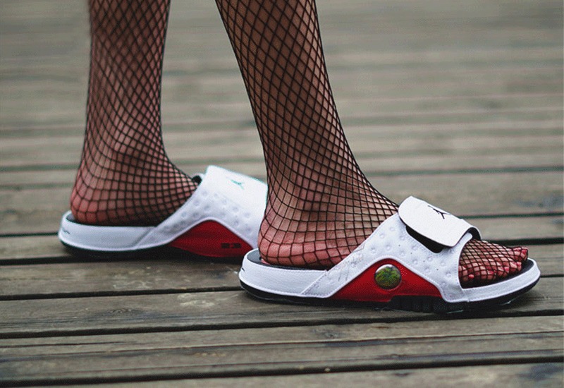 Air Jordan 13 的配套拖鞋 Air Jordan Hydro 13 拥有极高颜值的同时也具备了 AJ 拖鞋舒适度高的特点。