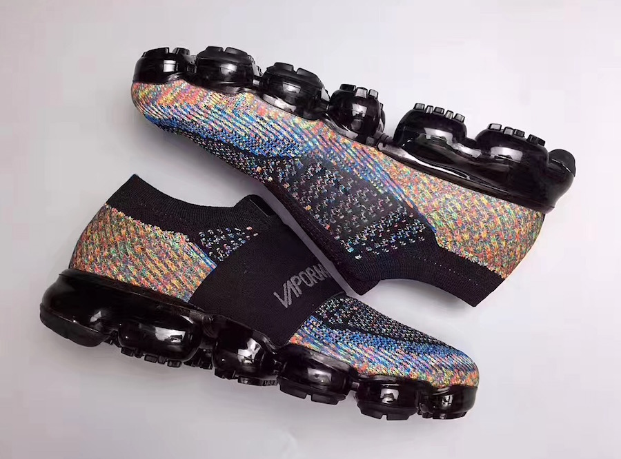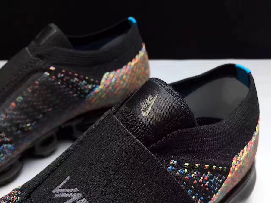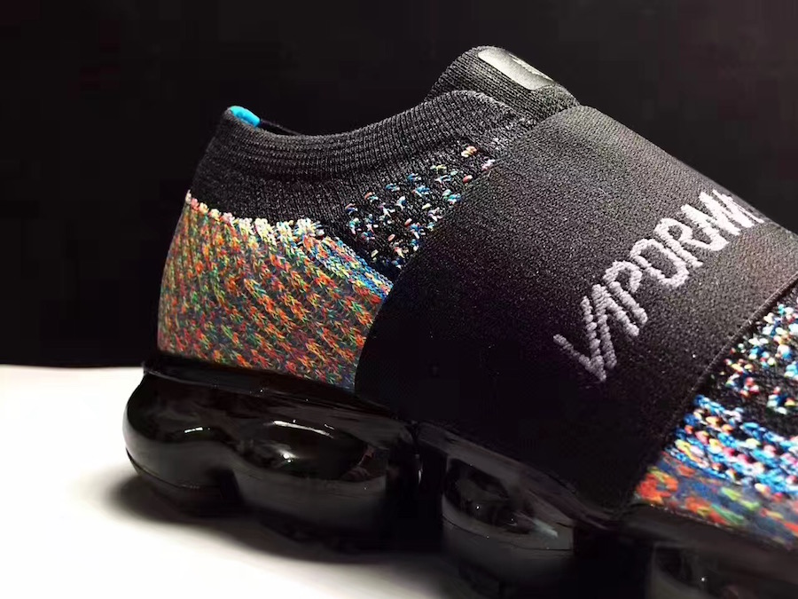 细节图中出现两个版本,都为黑色搭配多彩编织鞋面,但绑带细节有所不同,一款绑带上带有 “VAPORMAX” 标注,而另一款则是 Swoosh Logo,两个版本各有特点,不知你更欣赏哪双?