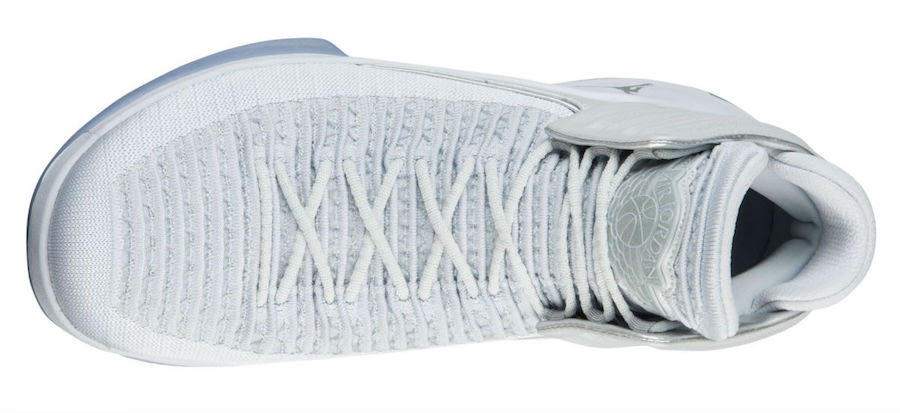 这双 Air Jordan 32 “Pure Platinum” 整体采用白银的配色方案打造而成,白色的 Flyknit 编织鞋面搭配银色皮制鞋面,使整体有种银装素裹的既视感!淡蓝色水晶外底带来一份清爽、干净!