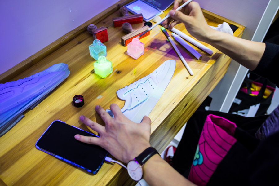 前往展位参与活动就能获得一块鞋子的模型,可以在上面自由创作涂画。