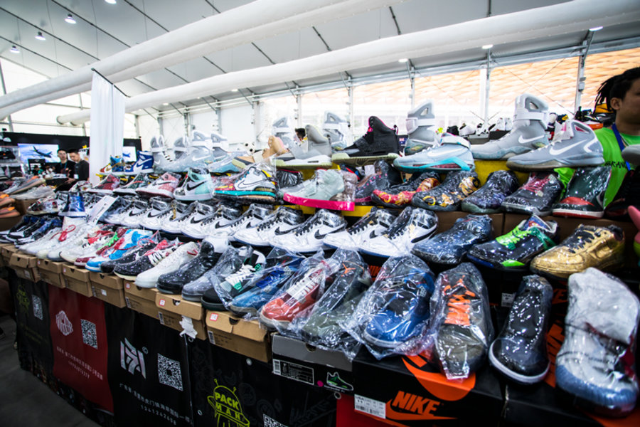 如果说各大品牌在 Sneaker Con 上用各种华丽的装潢和趣味活动吸引众多玩家,那 Sneaker Con 最正宗的球鞋交易区给人的感觉就是简单粗暴。