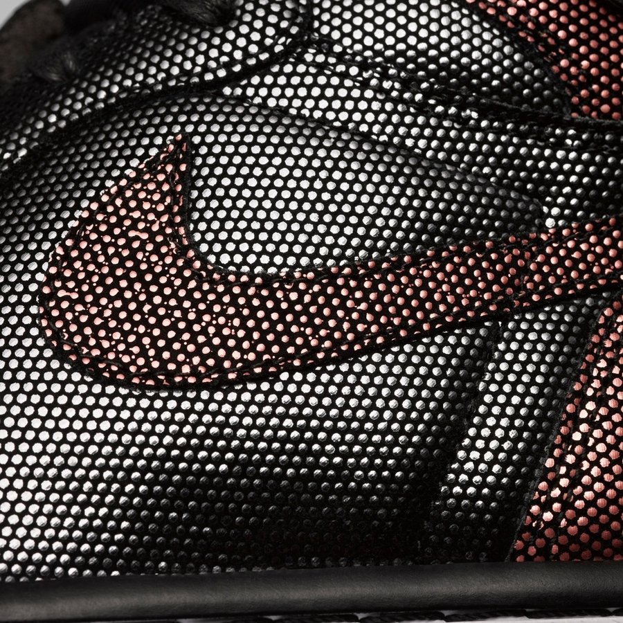 这双鞋采用了一种既像丝绸又像皮革的特殊材质,鞋身以黑铜为主色调搭配。
