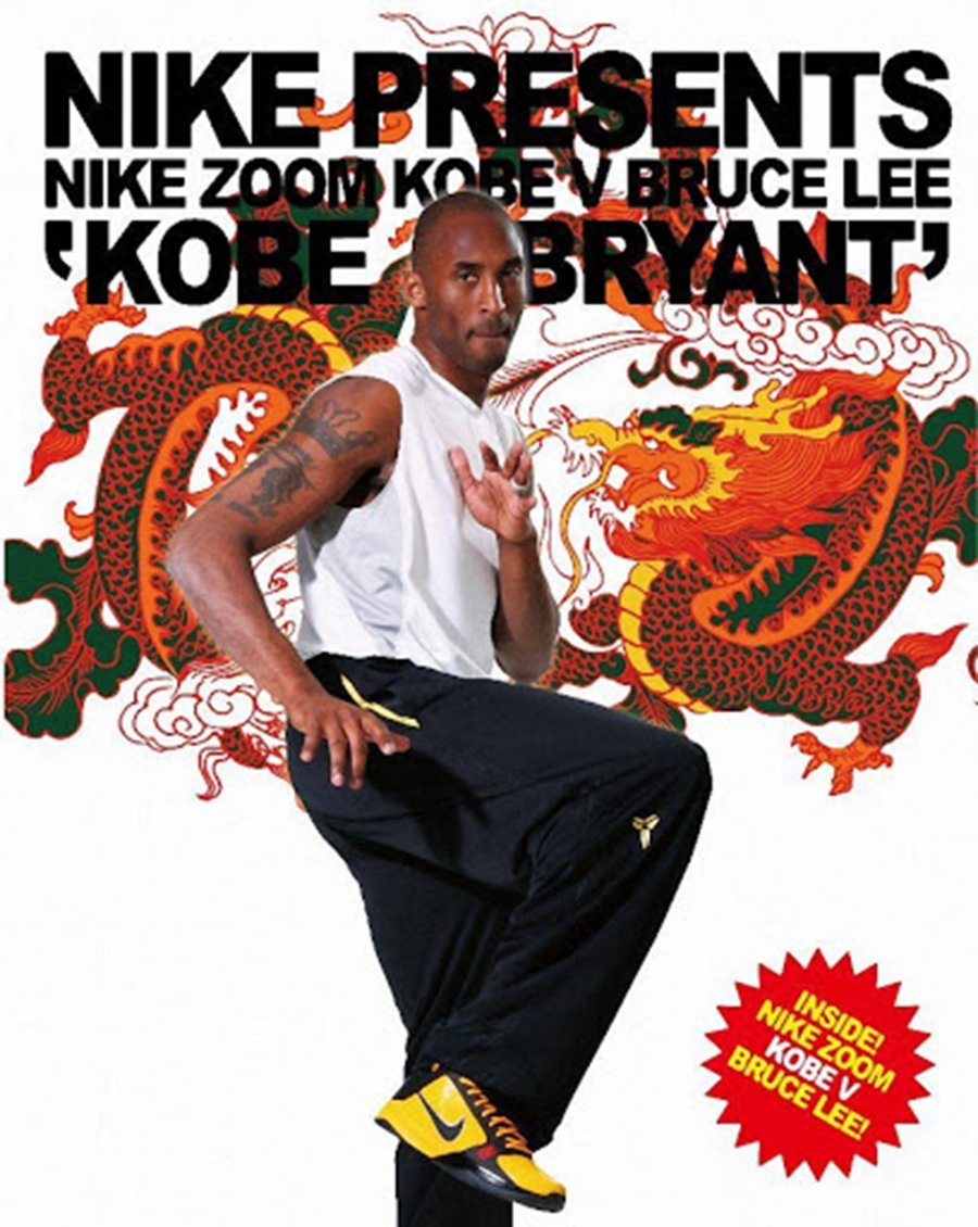 其他品牌也对李小龙疯狂致敬,他的狂热粉丝科比就曾为我们带来多款李小龙配色球鞋。