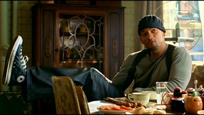 在《机械公敌》中则是上脚了一双 Converse Chuck Taylor All Star,并且在片中多次特写出镜。