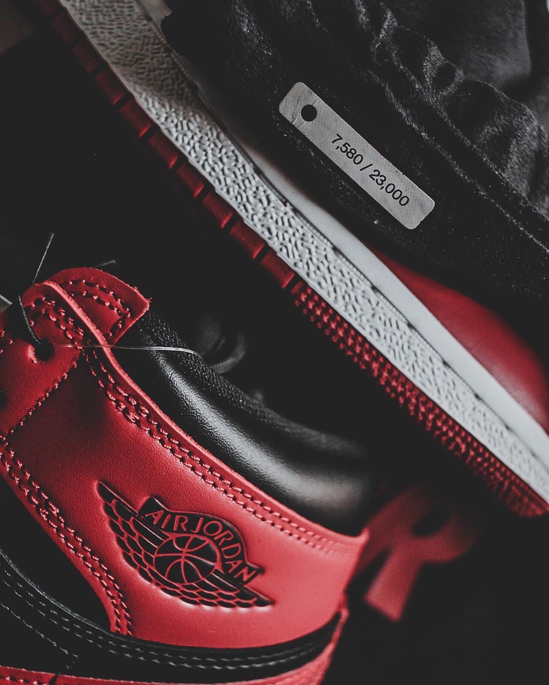 经典的黑红配色外加抢手的 Air Jordan 1 鞋型,最重要的是还带有限量编码...这款配色从曝光初期就预示了人气注定爆棚。
