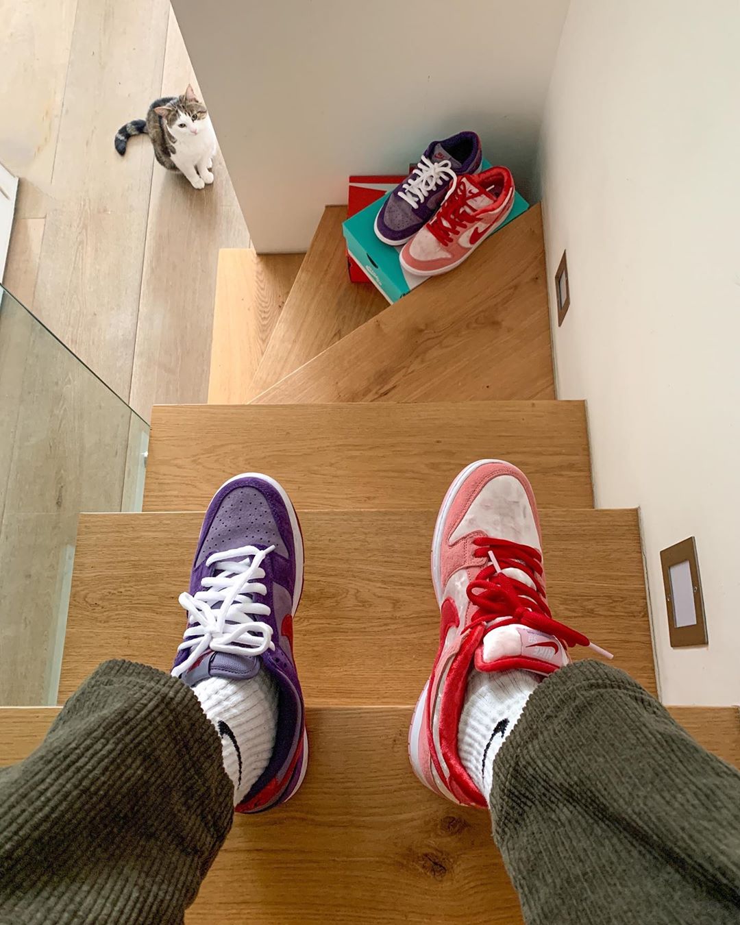 一方时当今球鞋圈最能带货的设计师,另一方则是今年话题度最高的 Dunk SB Low,这双强强联手注定会成为年度鞋王的候选人。