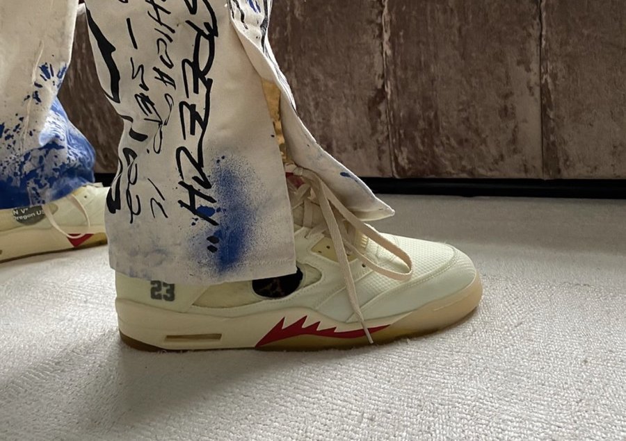 今年二月份第一双 OFF-WHITE x Air Jordan 5 正式发售之后,OFF-WHITE 主理人 Virgil Abloh 就在个人 Instagram 上首次晒出第二双配色 OFF-WHITE x Air Jordan 5 “Sail” 的实物照。