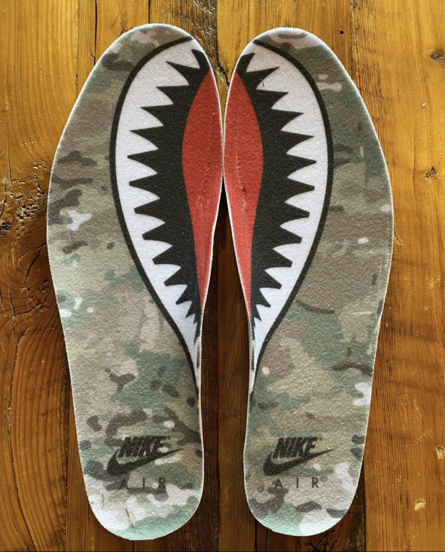 整体以空军白蓝装扮为主调,鞋舌内侧的 Air Jordan 标签特别为他改变为 Air Peyton 字样,鞋垫辅以战机鲨鱼涂装示人。