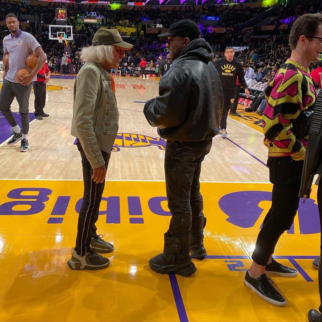 从上脚效果来看,纯黑色看起来比首发配色更好驾驭,虽然造型依旧夸张,但还算不错地融入了侃爷的整身黑色穿搭。