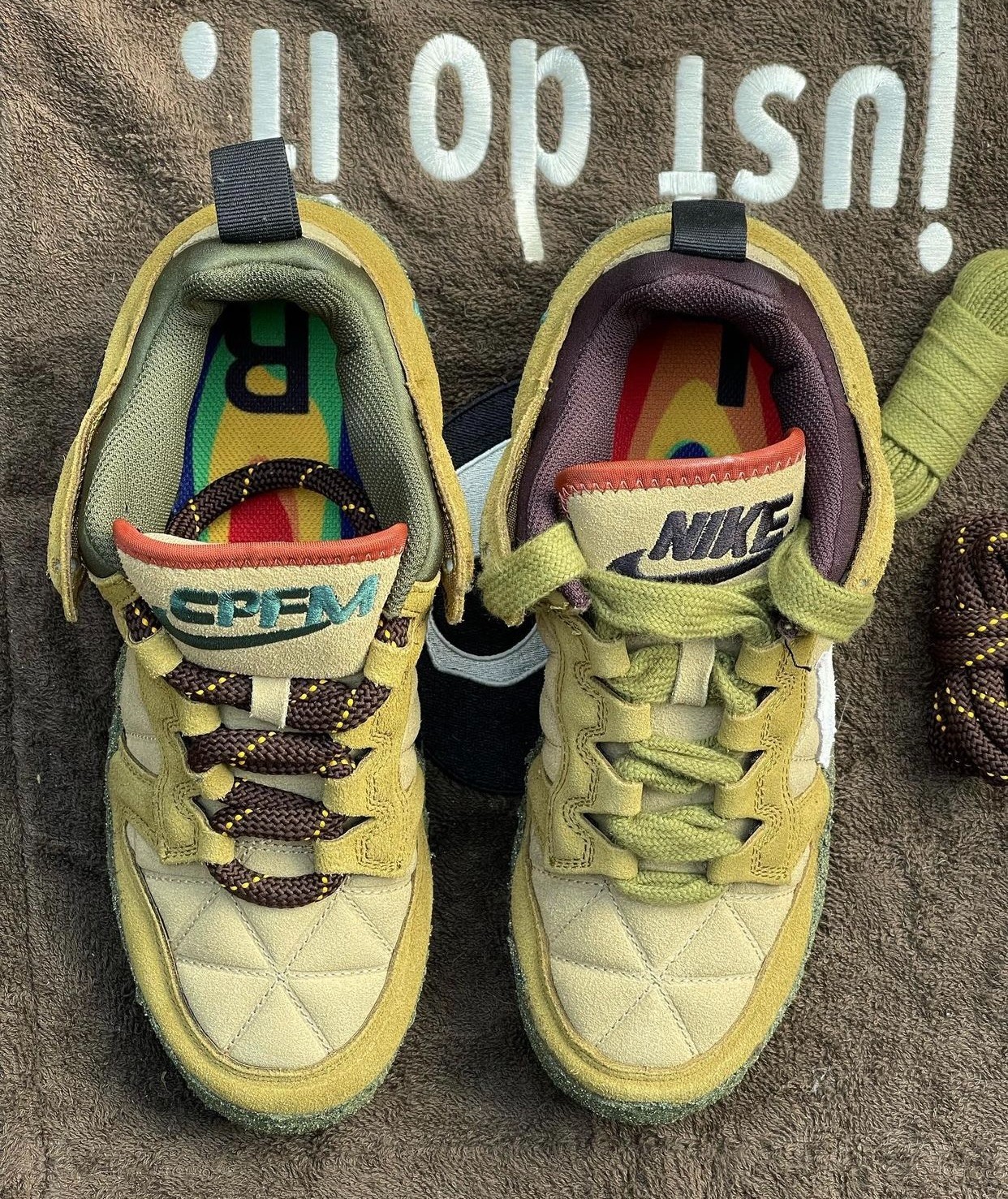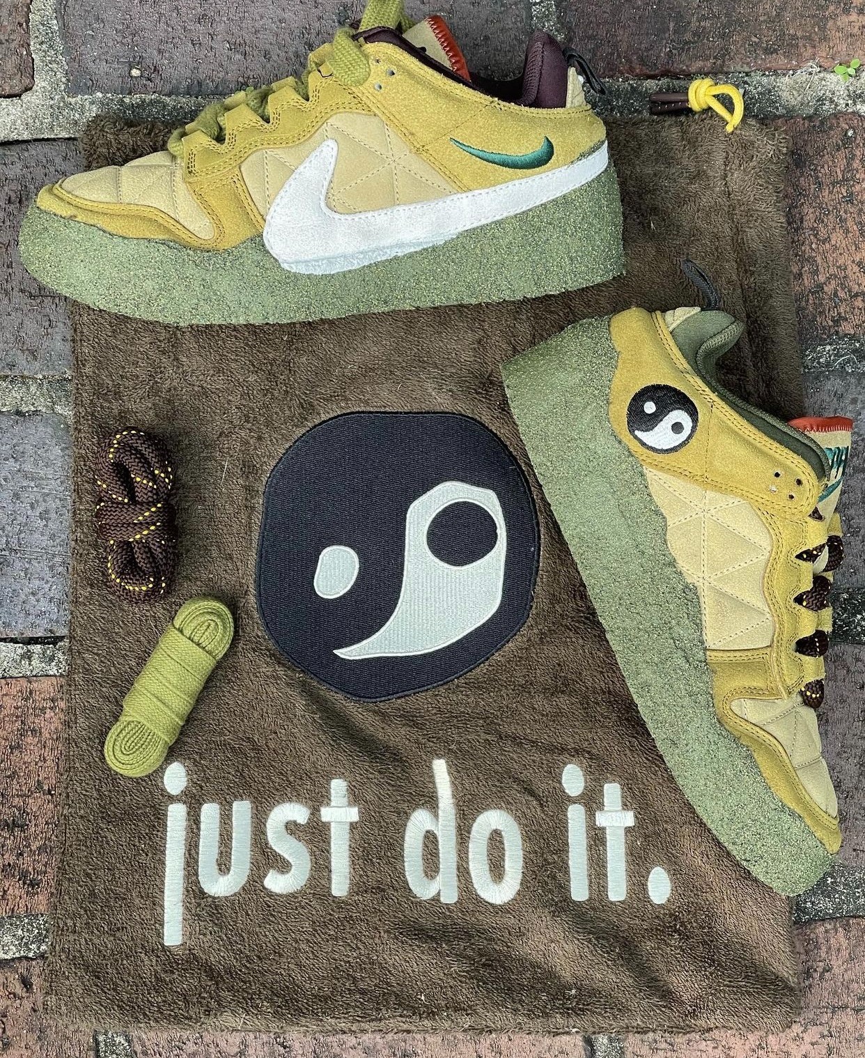 配件上不光自带两幅鞋带,还有毛巾绒的鞋袋,论规格绝对算是 Nike 阵营里的顶级联名。