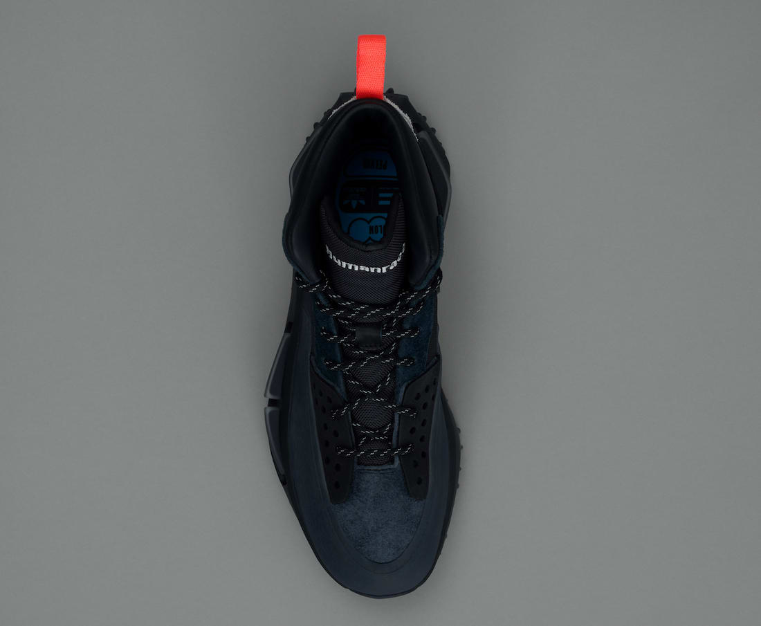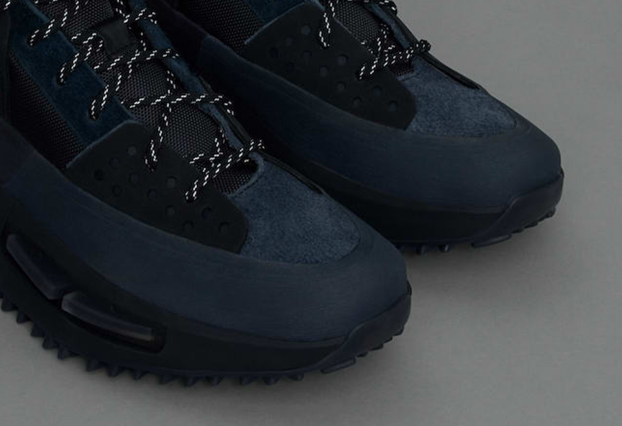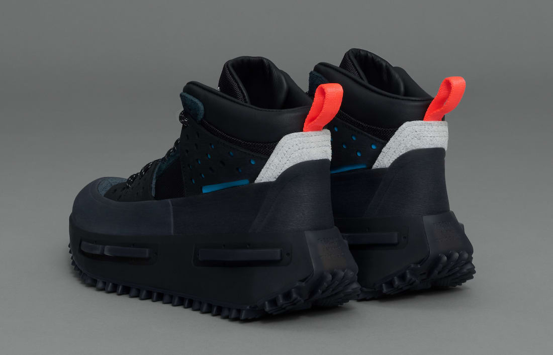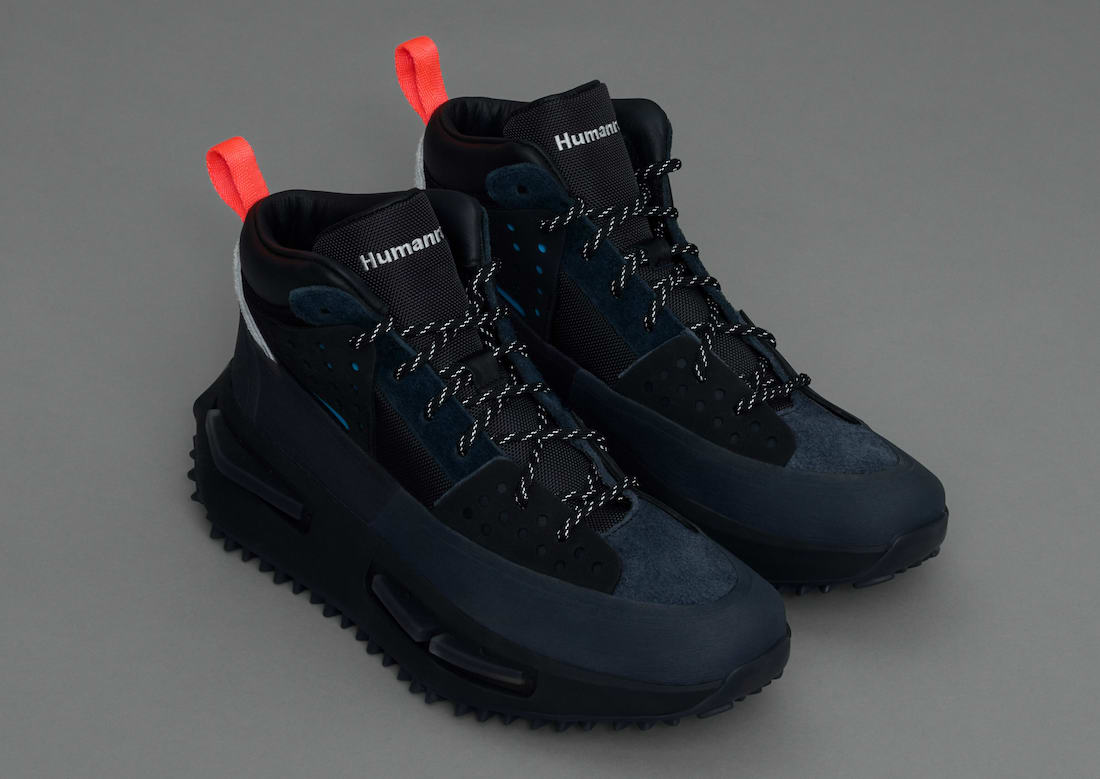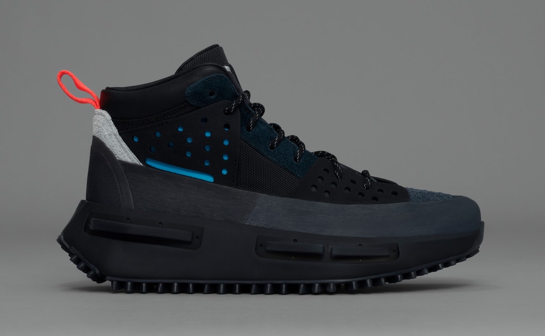 整双鞋以徒步旅行为灵感设计,采用黑色为主色,灰色、蓝色和红色点缀,低调且百搭。