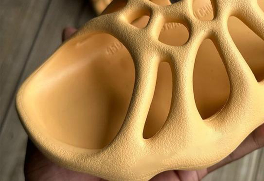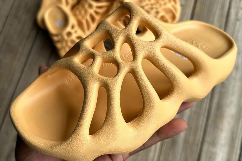 外观上和 Yeezy 450 的风格颇为接近,侧面都有类似的「火山」造型,镂空的鞋面设计确实清爽。