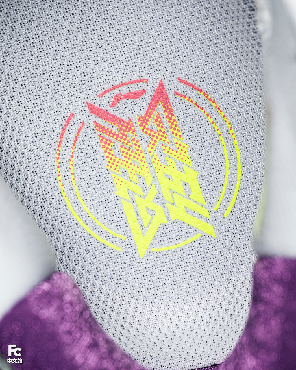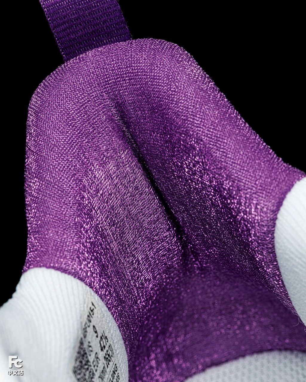 后半部分紫色面料则像魔术贴一般,通过许多单向的细小 “毛刺”,形成止滑效果,防止穿着过程中掉跟。