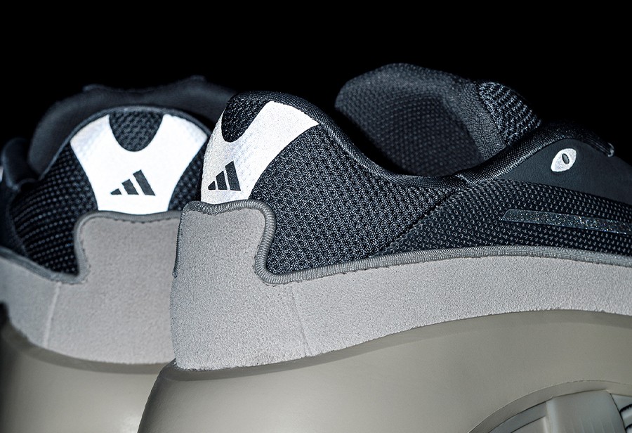 而在细节方面,整双鞋移除了侧面标志性的三线条纹,仅通过 Mini adidas LOGO、3M 反光饰条前段,以及鞋头的点状 3M 反光彰显身份,可以说是相当低调了。