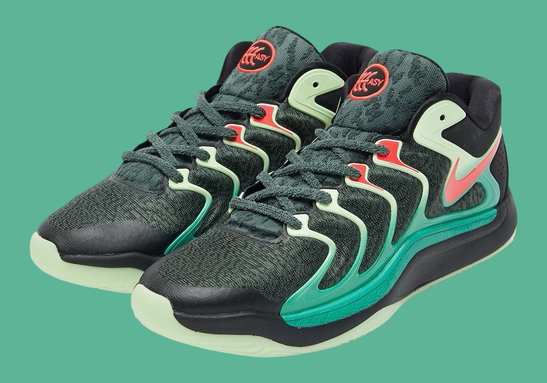 近期最新一代签名鞋 KD17 迎来「Easy Money Sniper」配色登场,相较于首发配色,细节也进行了更为丰富的刻画。
