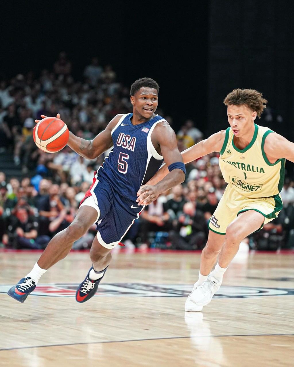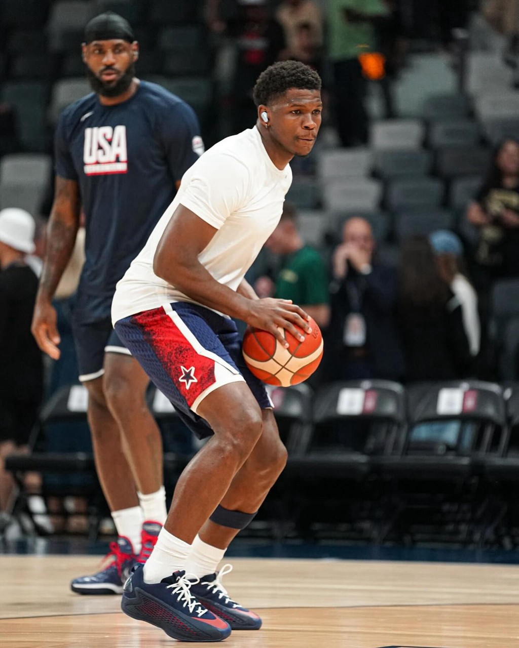 而这双则是爱德华兹在本届奥运会上的亲穿配色,颜值来说见仁见智,你能打几分呢?