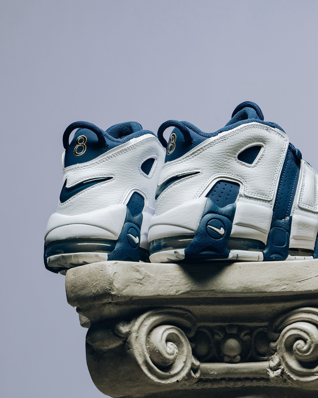 作为当年皮蓬在奥运赛场亲穿的 PE 配色,这双可谓是大 Aie 中最经典的配色之一,后跟 8 号金色刺绣是灵魂所在。
