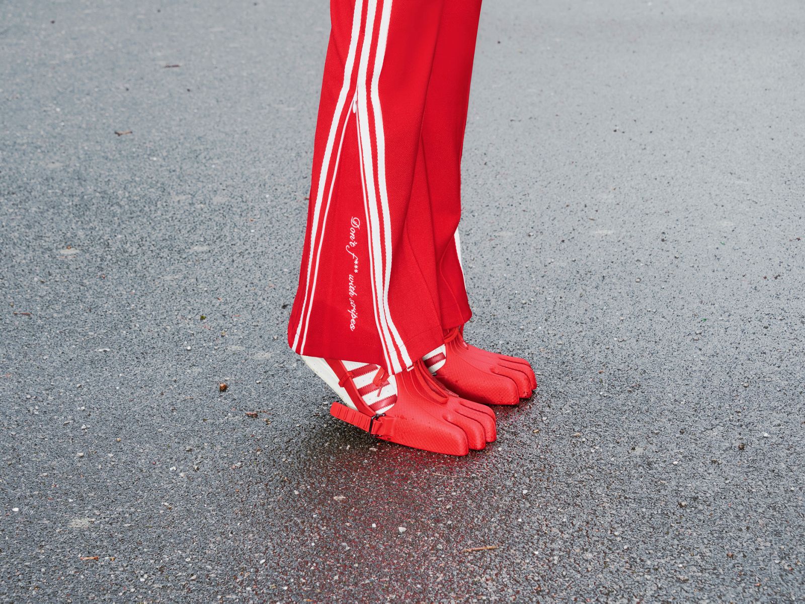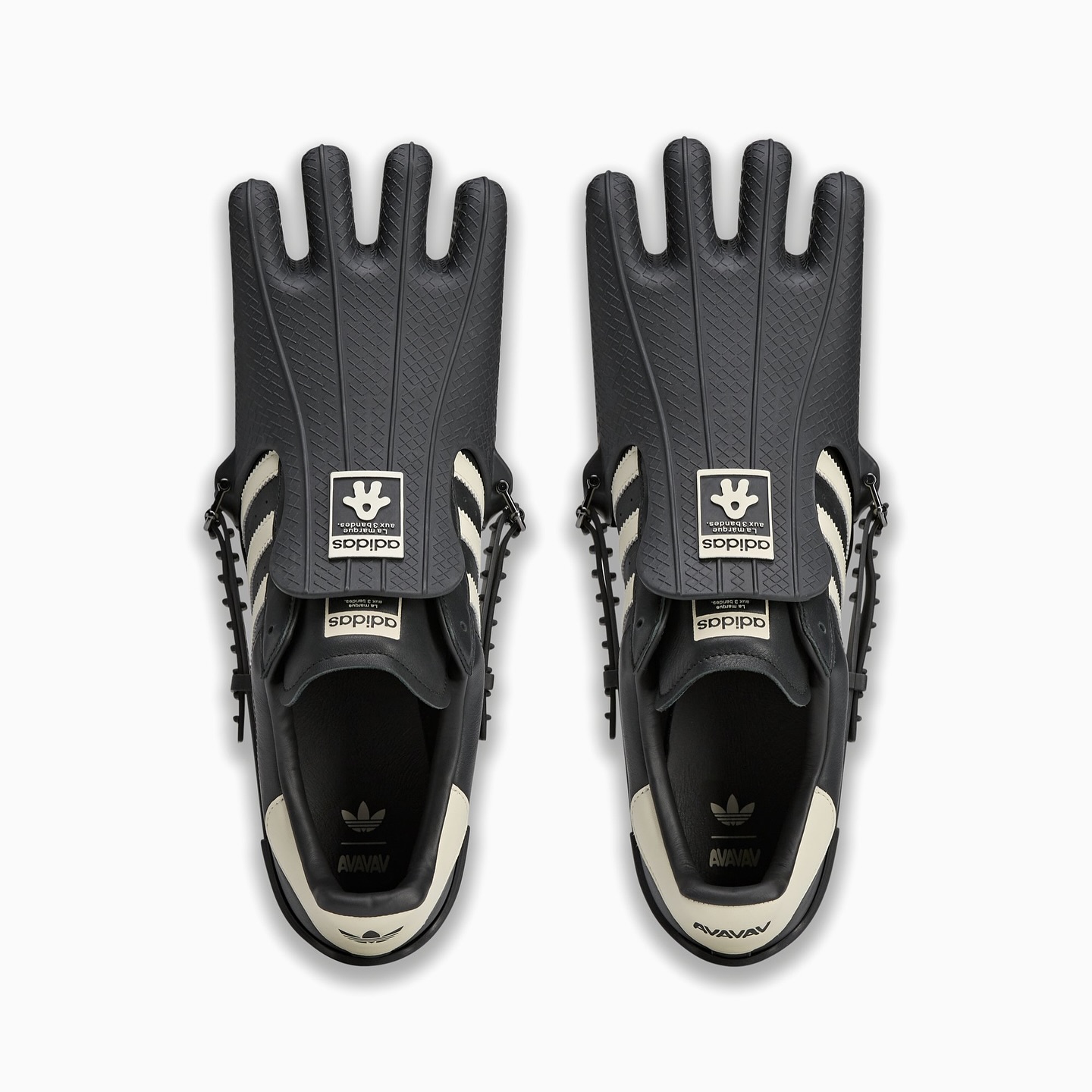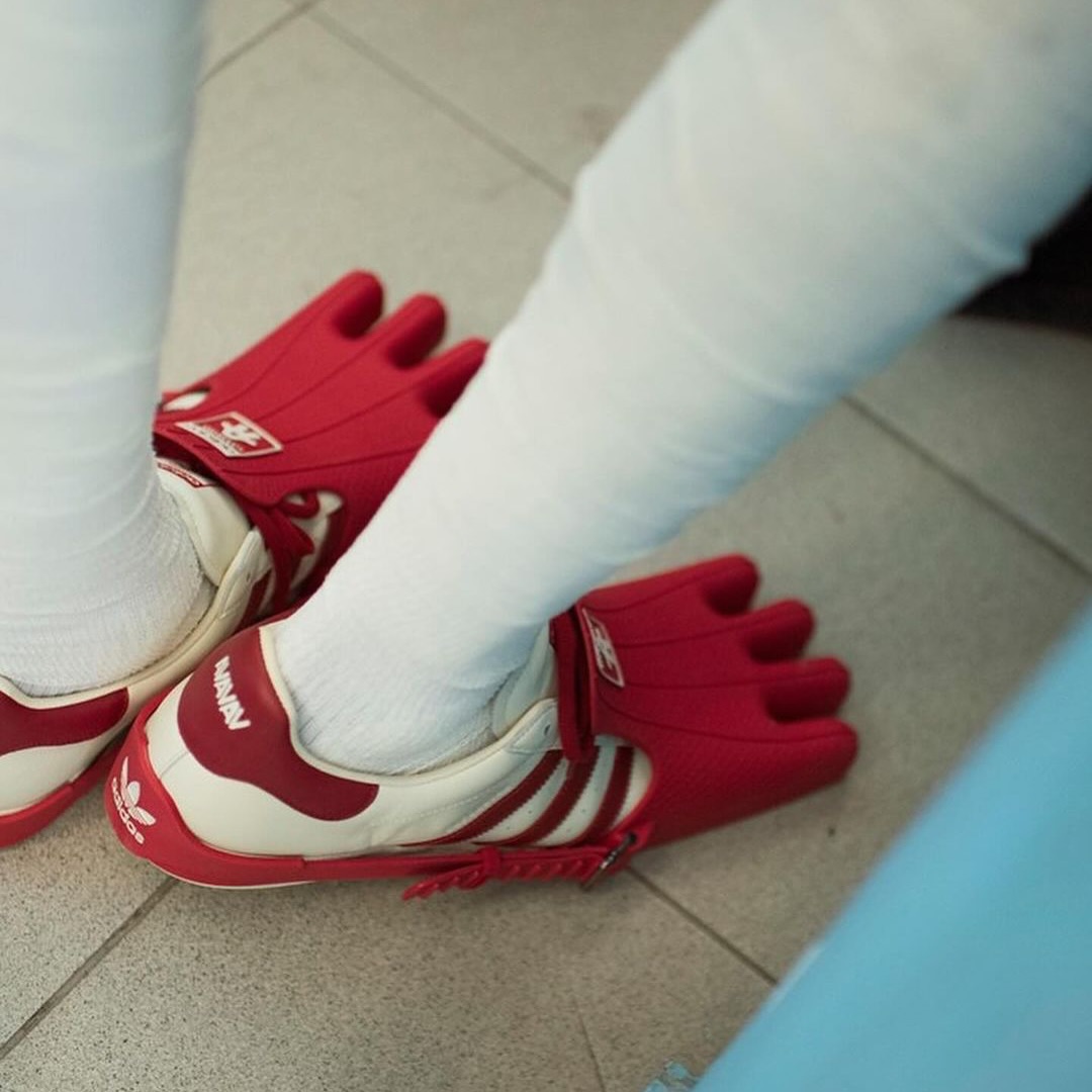 以经典的 Superstar 贝壳头为基础,融入了 Avavav 品牌标志性的元素——四指造型,很有 “鸡爪” 的效果,但它是真的可以穿着和正常行走的!
