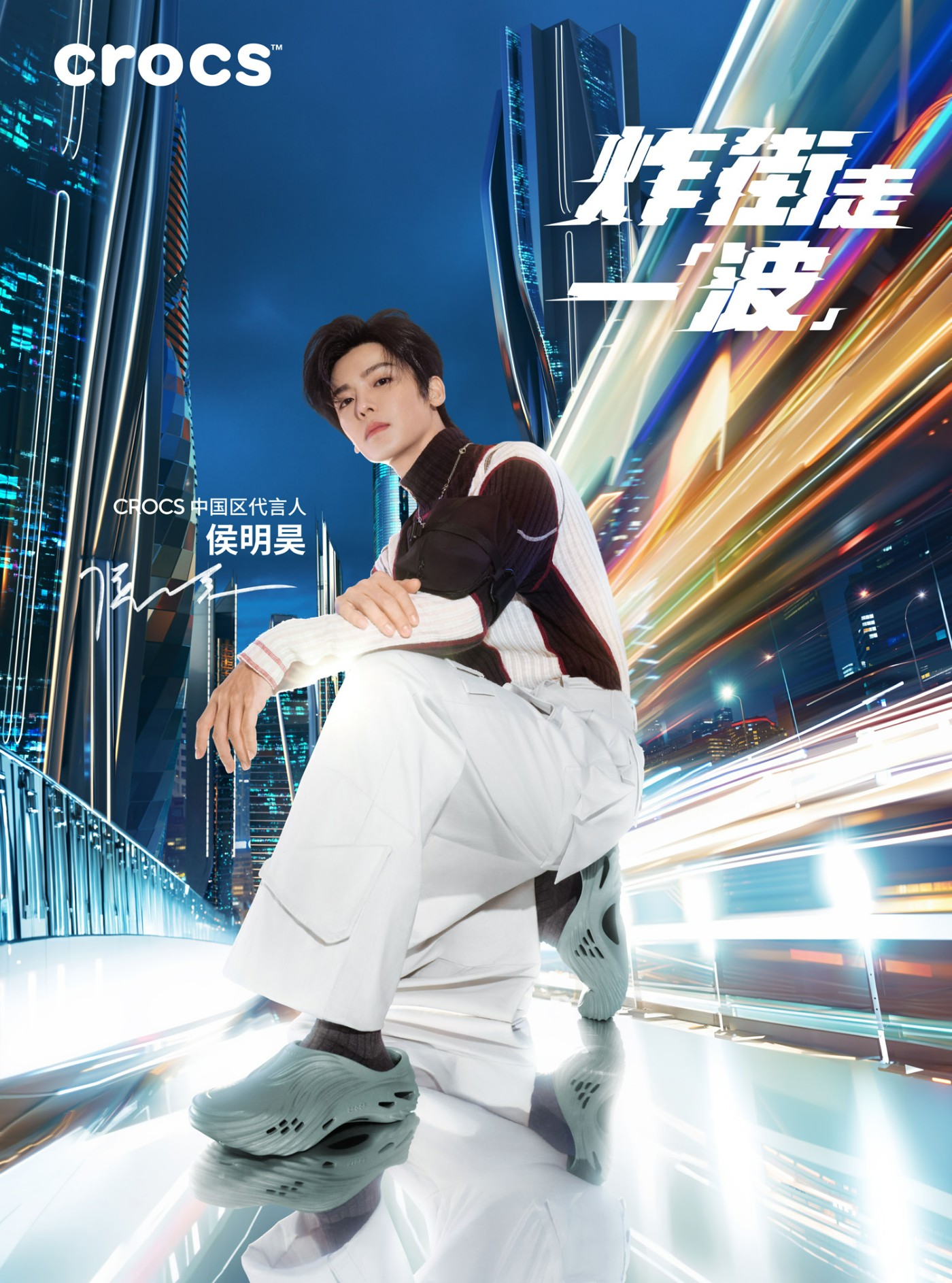 目前 Crocs 卡骆驰中国区品牌代言人侯明昊上脚。