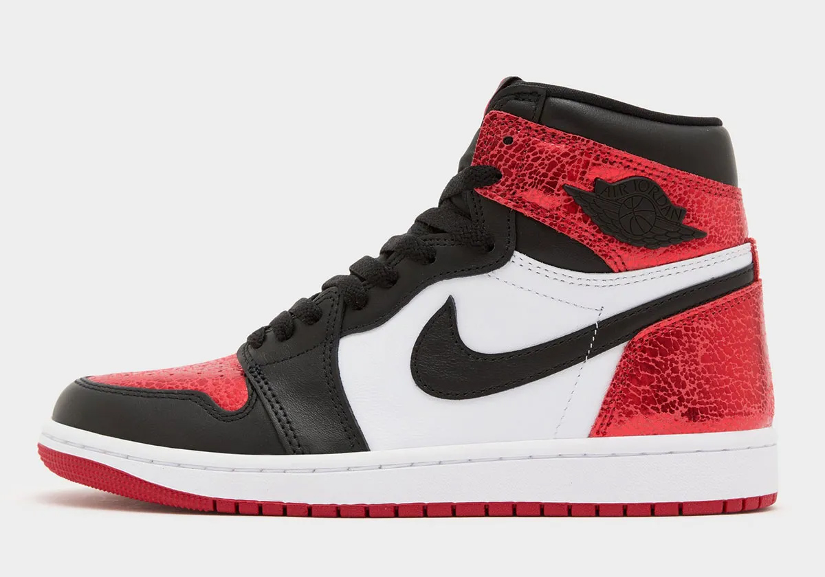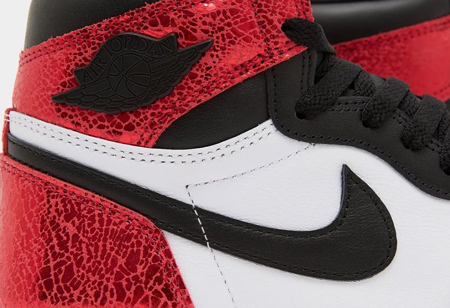 鞋面采用大家颇为青睐的黑红脚趾构色方案上,红色部分特别采用金属质感的裂纹皮革示人,营造更为华丽大胆的视觉彰显。