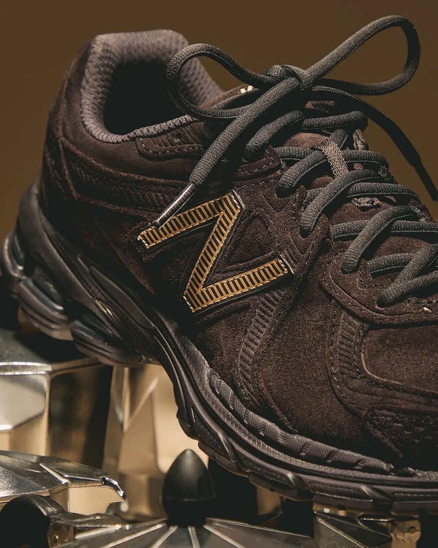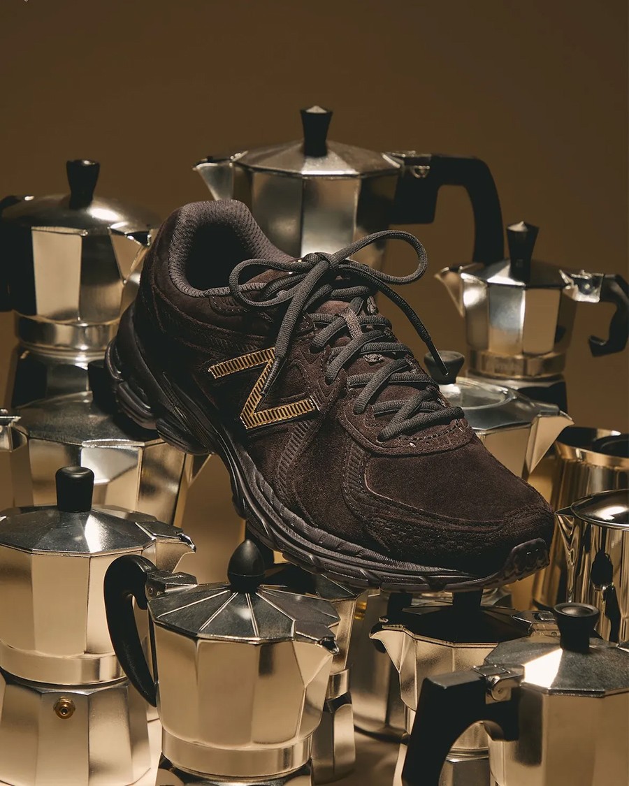 这次双方以 New Balance 860v2 鞋型为载体,选用 Espresso 浓缩咖啡为灵感,将棕褐色覆盖整体鞋身及大底,金色点缀鞋侧 N 字 Logo 及鞋舌。