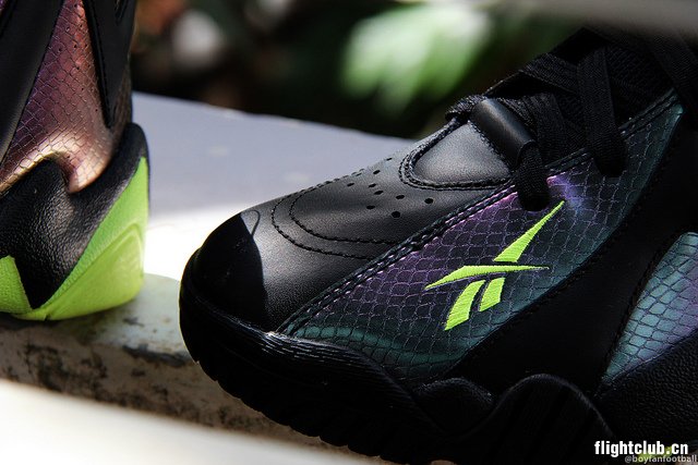早在四月份网路上就曝光过蛇年配色的Reebok Kamikaze II的谍照,而近日网路上曝光了这款版本详细图片,蛇年版本鞋面采用大面积渐变蛇纹材质和黑色革面相间的搭配,荧光绿作为点缀色出现在鞋舌、鞋头Reebok Logo和外底后跟处,据悉这款配色不久之后将于大家见面,更多信息会陆续带来。