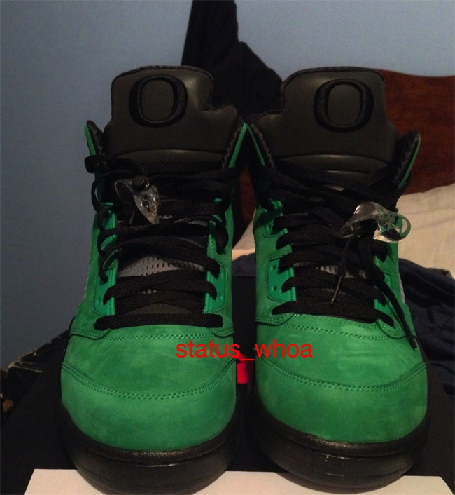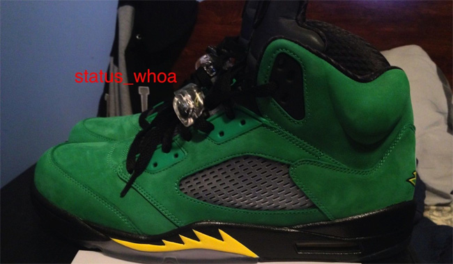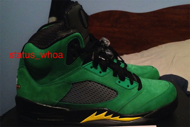 这次俄勒冈鸭子和 Air Jordan 5 的结合同样吸引了大量的关注度,这款已经热得满城风雨的 Air Jordan 5 "Oregon Ducks" PE 将在 2014 年 2 月 15 日 NBA 全明星周末正式市售,不过传言货量极小。现在给大家带来更多的实物实拍图片。