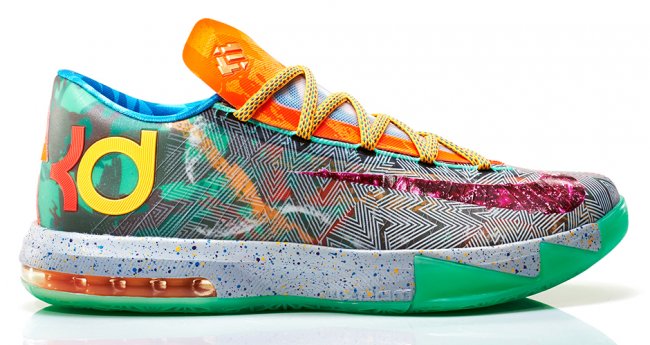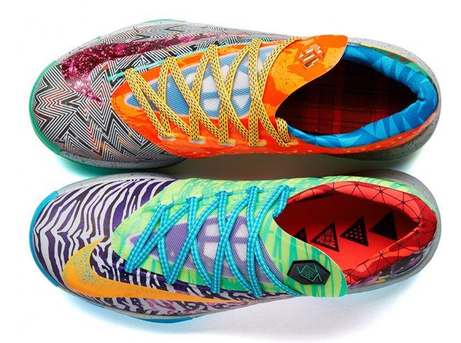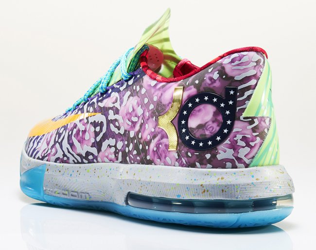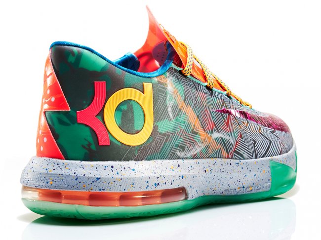 耐克篮球部早在 2007 年就与杜兰特签约,耐克公司对于凯文•杜兰特能够迅速成长为世界顶尖运动员充满信心。杜兰特的敬业精神、谦逊态度和不断挑战极限的信念始终如一。他的成长旅程激发了 KD VI 的设计灵感。去年,这款战靴最初在杜兰特孩提时代的活动中心,即 Seat Pleasant 活动中心发布,杜兰特将这里视为他的第二故乡。全新的 KD VI “What The KD”以 KD VI 历史款型的丰富配色为灵感,糅合 35 种图案和色彩,玩转混搭风潮。从以马里兰蓝蟹为灵感的 Swoosh 标志,到 Aunt Pearl 系列上的花朵图案,全新设计浓缩了杜兰特个人故事的精华元素。