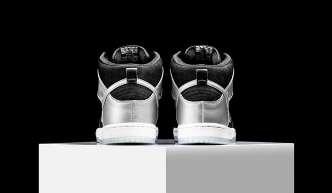 Nike SB 以绿野仙踪为设计灵感来源,在 Nike SB Dunk High 高帮鞋型上打造了此款 Tin Man 配色。