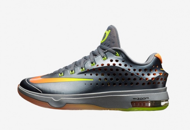 Nike KD7 Elite 以全新的鞋面设计登场,采用了颇具创新的鞋面设计,以 Hyperposite 材质打造外层鞋面,内层则搭载 Flywire 动态飞线以提供良好的稳定性,外层鞋面的冲孔装扮在提供透气性的同时也带来了独特的视觉感官效果。后跟依然搭载外露式的 Zoom Air 气垫。 首发 3 款配色,第一款将在 4 月 18 日正式发售,5 月和 6 月还将分别有蓝色和黑金配色登场。