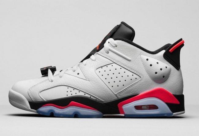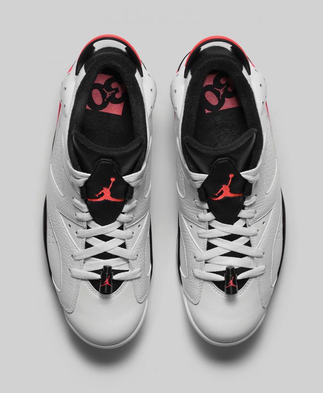将熟悉的白红装扮在 Air Jordan 6 Low 低帮鞋型上呈现,Air Jordan 6 Low “Infrared” 将于 7 月 4 日正式发售,全新的低帮设计以更为灵巧的视觉效果带来全新体验。 以白色皮革鞋身为主体,辅以黑色细节,红外色的细节装扮注入抢眼的亮点。以运动活力为基调,实为夏季穿搭的上佳选择。 货号:304401-123 发售日期:7 月 4 日 发售价:$175