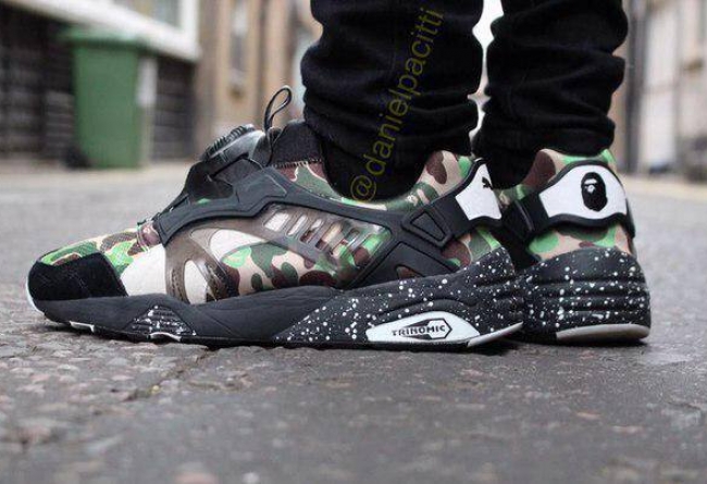 Puma 在近期的鞋履市场动作频频,此番携手 BAPE 将日本街头潮流带到 Puma Disc Blaze 经典鞋型上。 熟悉的 BAPE 猿人迷彩,深浅两款配色,注入 3M 反光元素和泼墨中底装扮,预计将在年底正式发售。