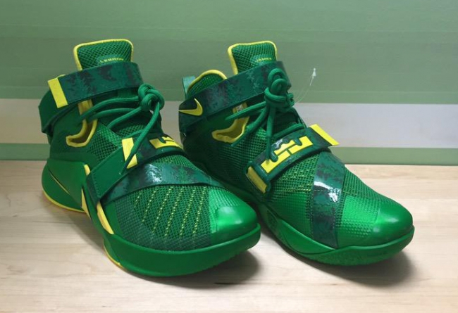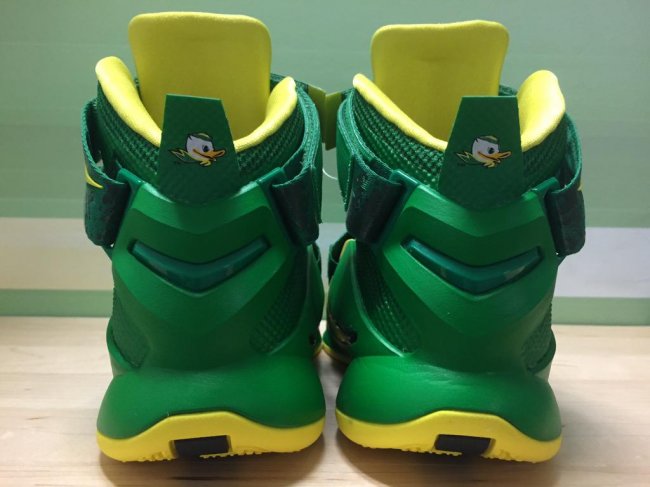 由 Oregon Equipment 官方曝光,带来一款鸭队氛围浓厚的实战篮球鞋。基于 Nike LeBron Soldier 9,选用绿色主色调点缀黄色细节,整体的绿黄装扮,加上后跟鞋提的鸭子标志,都表明了它的独特身份。