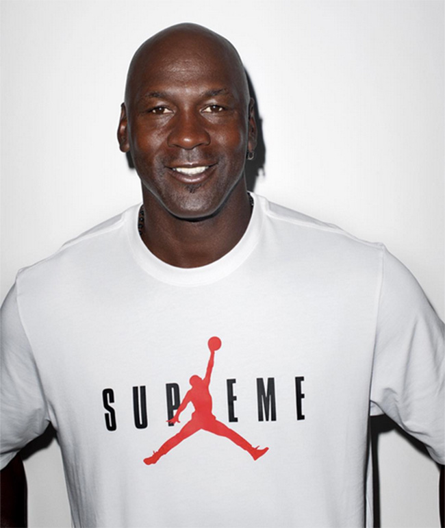 这一合作自然也得到了 Jordan Brand 甚至是 Michael Jordan 乔帮主本人的极大重视。由 Jordan Brand 官方 Instagram 发布,MJ 身着白色的 Supreme x Jordan Brand T 恤亮相,红色的 Jumpman logo,加上黑色的 Supreme 字样,再配上乔帮主的脸,这一发重磅真可谓是卯足了劲,全力打造年度最佳联名!