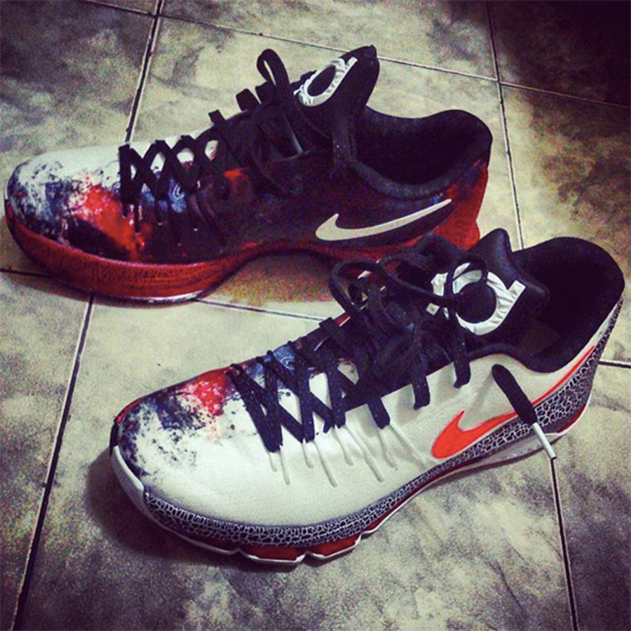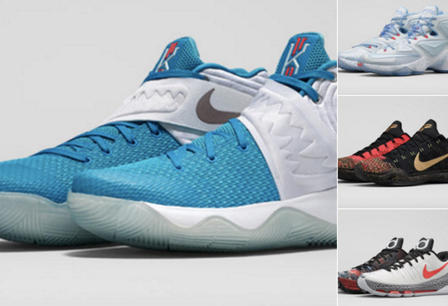离圣诞节愈发临近,Nike Basketball 今年将带来怎样的圣诞大战系列配色,一直是大家关注的焦点。今天终于水落石出,4 款签名球鞋的圣诞配色亮相,其中 Kyrie 2 XMas 我们已经见过实物,LeBron 13 以白色主体辅以天蓝装饰,Kobe 10 Elite Low “5 Rings” 则加入到圣诞系列之中,KD 8 带来的视觉冲击力则让人难以回避,着实令人期待! 将于 12 月 26 日正式发售,相信更多清晰图片会很快亮相,我们将密切关注。