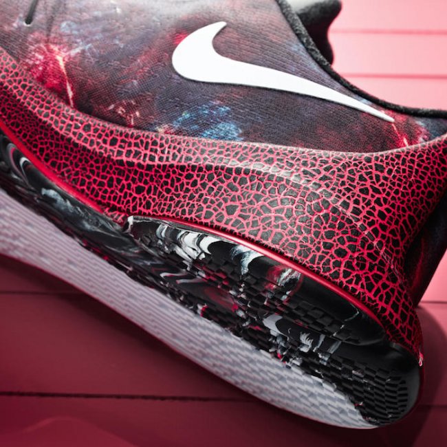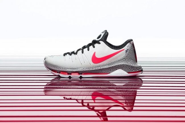 KD8 则以燃烧的煤炭为主题,白色的外侧鞋面辅以内侧的多彩泼墨点缀,再以爆裂纹中底装饰,惊艳指数爆棚。