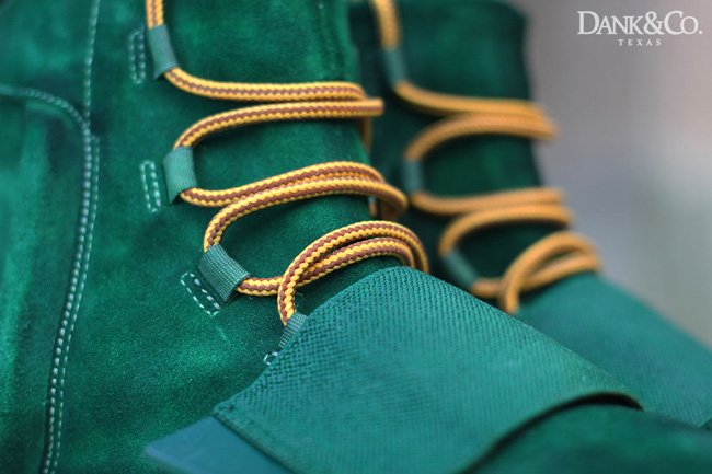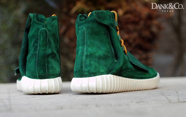 adidas Yeezy 750 Boost 无疑是 2015 年度具备超人气级别的鞋款,而基于它的定制鞋款则应该更为特别,毕竟目前市面上的 adidas Yeezy 750 Boost 都特别昂贵。 Dank Customs 带来一款他们的全新作品,将原有的灰色麂皮鞋身改为抢眼的绿色,鞋带和外底的反差托衬,带来更为强烈的视觉冲击力。