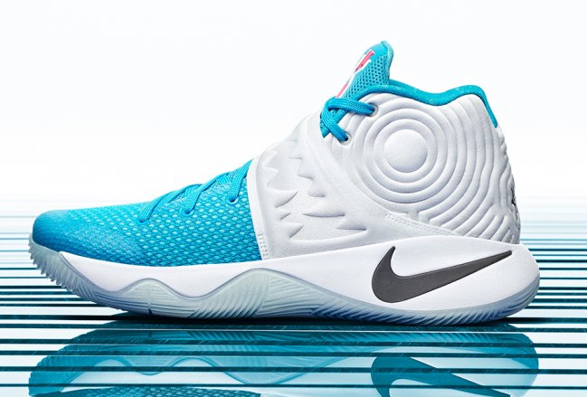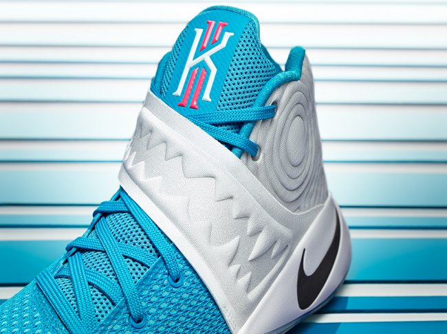 KYRIE 2 圣诞版采用模拟牙齿形状的锯齿形压纹图案,匠心搭配白蓝配色涂层,以非凡品质向喜马拉雅雪人致敬。冰感透明外底烘托出浓郁的节日气氛。