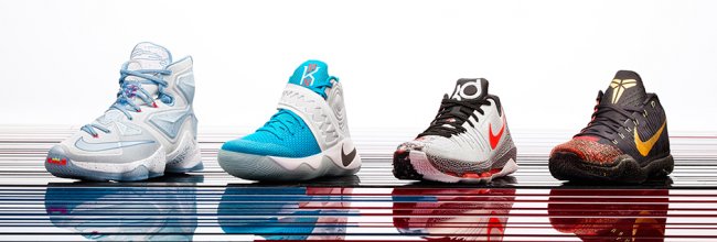 2015 Nike Basketball Christmas 系列以冰与火的碰撞为灵感,包括 KOBE X、KD8、KYRIE 2 和 LEBRON 13 四款设计。