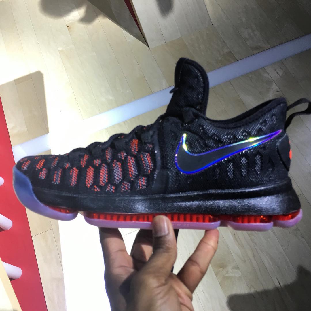 杜兰特战靴在带来季后赛版本的 KD 8 Elite 之后,于前天曝光了 KD 9 的鞋型原型,而今天 Nike Basketball 就正式发布了杜兰特的第九双签名战靴 KD 9!同时实物也曝光了图片,依然采用了全掌开窗气垫,但造型方面有所调整,而鞋身材质则迎来全面革新,Flyknit 编织鞋面首次亮相 KD 战靴。
