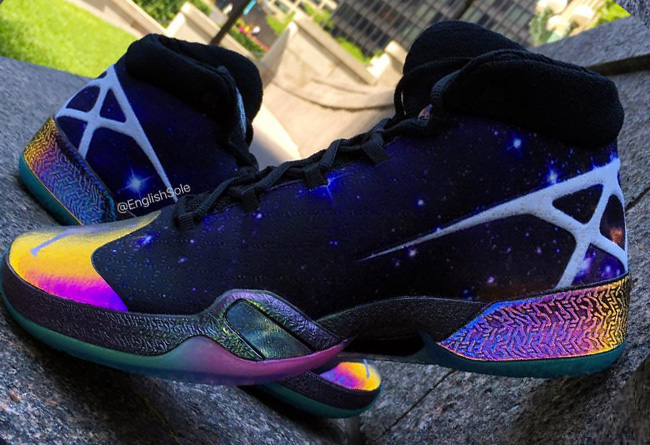 算得上是目前为止,Air Jordan XXX 最具人气的市售配色了!这款以 Quai 54 世界街球锦标赛为主题打造的 Air Jordan XXX Cosmos,以银河星空纹理呈现于鞋面。